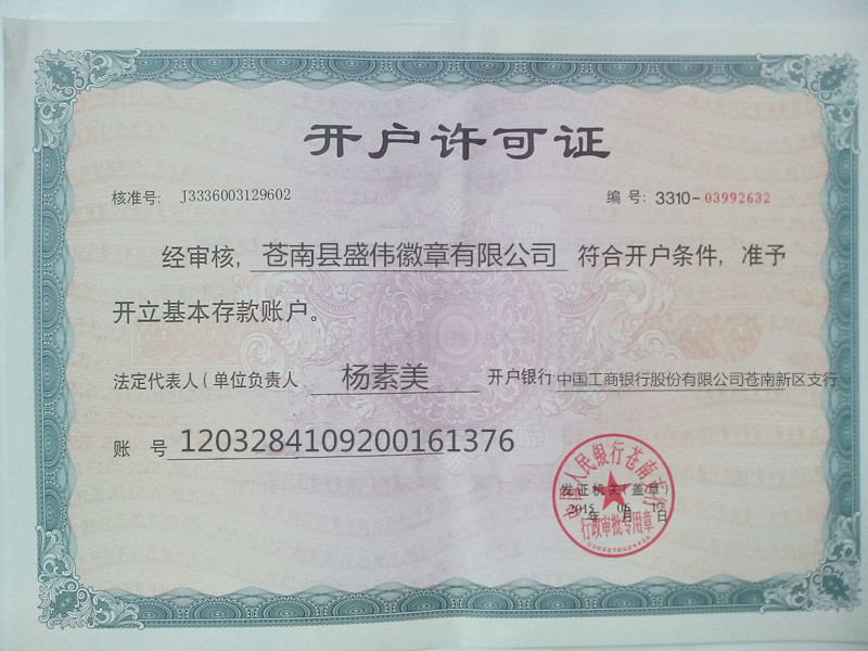• 開戶許可證
